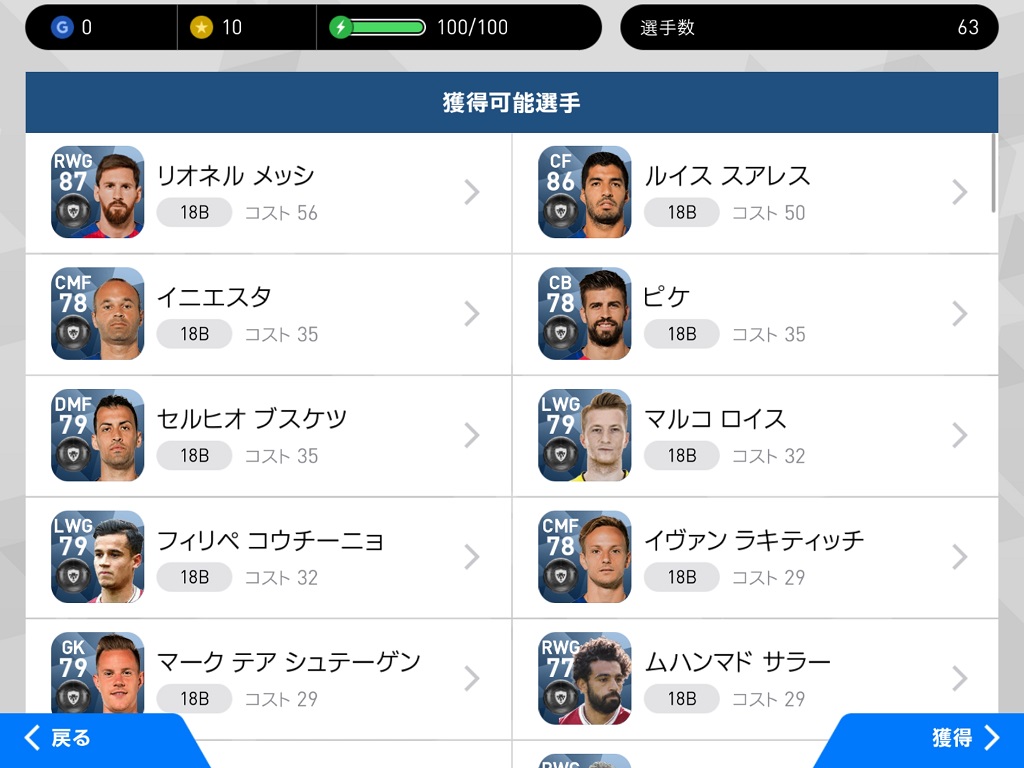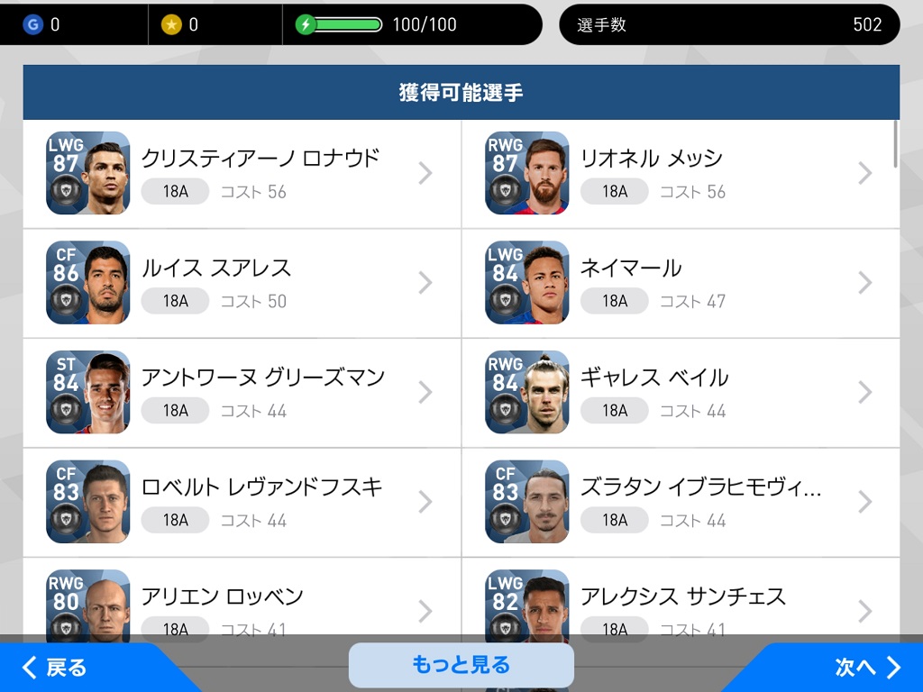 メッシロナウドは、このゲームでも抜きん出た選手なので、迷ったらこの2人のどちらかを狙えばよいでしょう。確率が一桁違うのでメッシを狙うほうが現実的かもしれません。