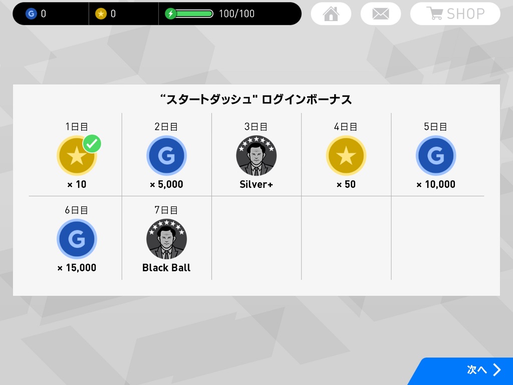 8日目からは通常のログインボーナスになりますが、最初の1週間で30,000GPと黒球確定スペシャルエージェントが貰えるのは大きいです。