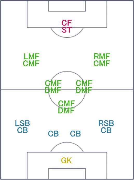 | フォーメーション | 4-3-2-1 18A/18B |
