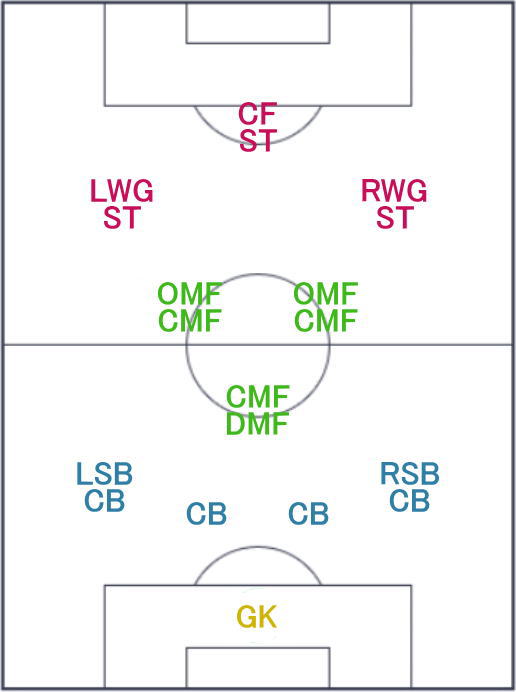 | フォーメーション | 4-3-3 18A/18B |