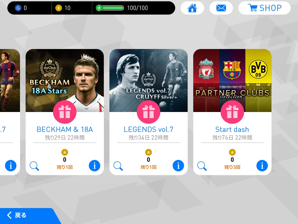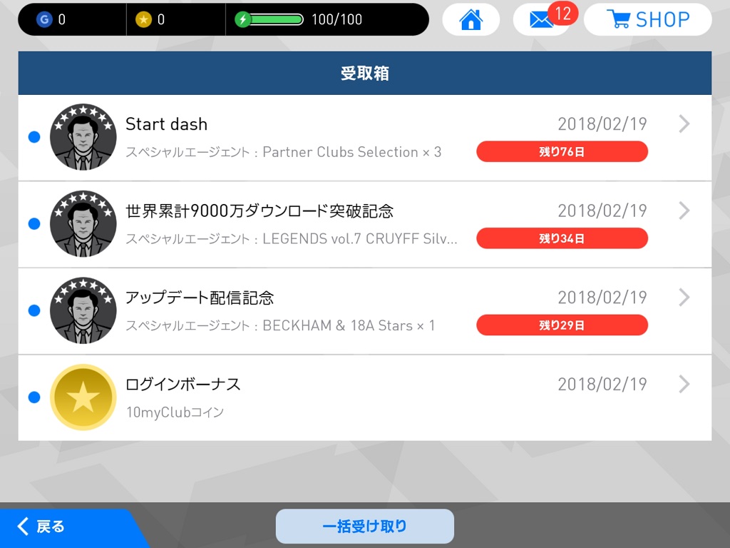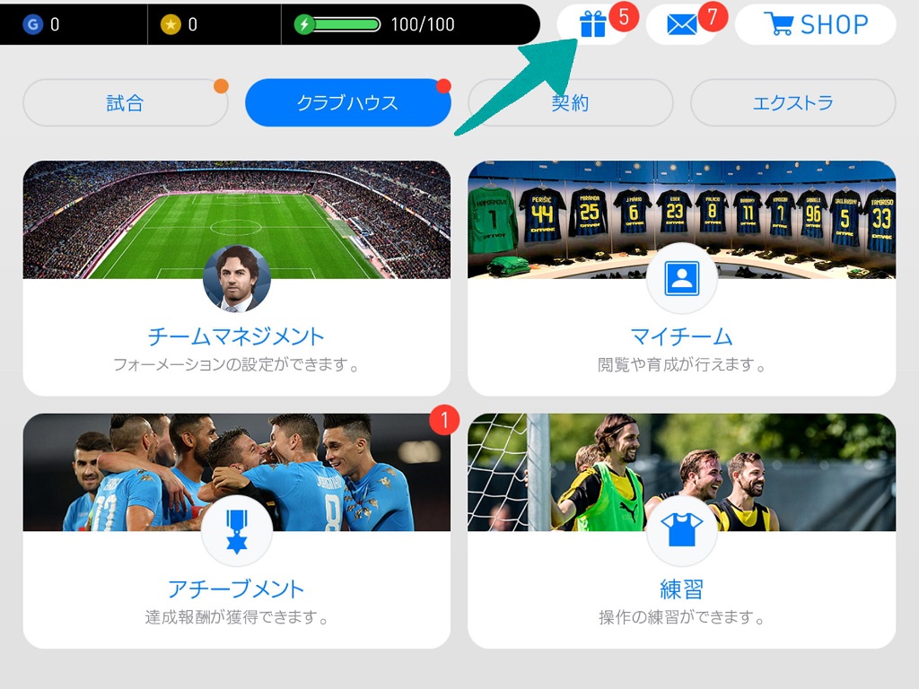 ホーム画面の上部にあるプレゼントマークをタップすると、スタートダッシュキャンペーンとして3チーム(バルセロナ/ドルトムント/リヴァプール)の選手が獲得できる銀球以上確定スペシャルエージェントが受け取れます。(2018年5月7日13:59 JSTまで)。