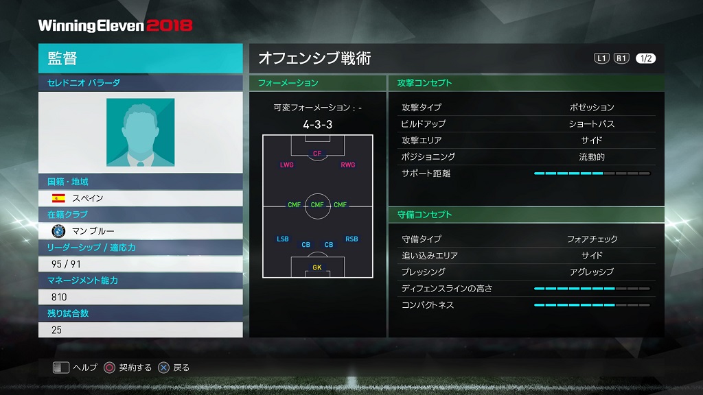 | フォーメーション | 4-3-3 18C |
