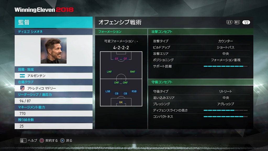 | フォーメーション | 4-2-3-1 18A/18B/18C |