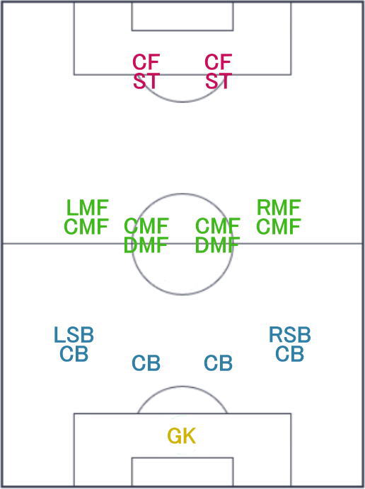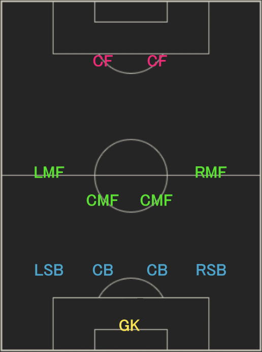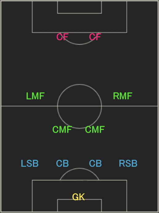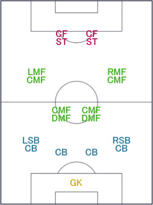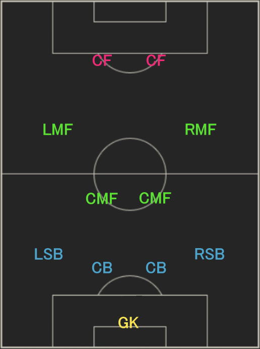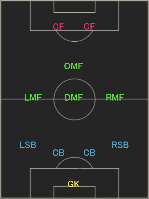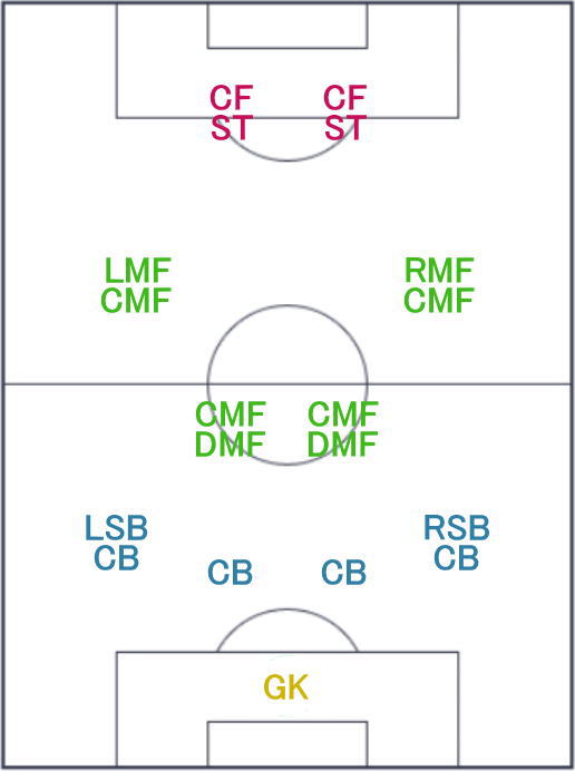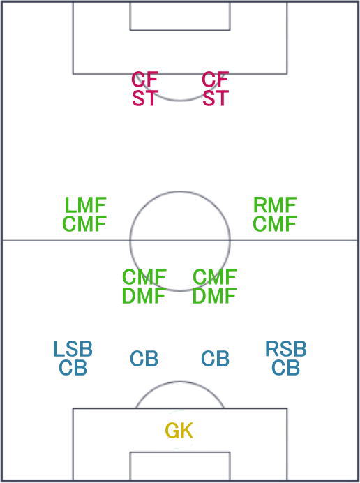 | フォーメーション | 4-2-2-2 18C |