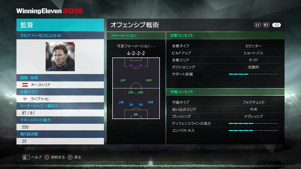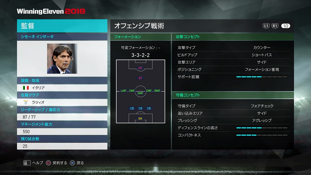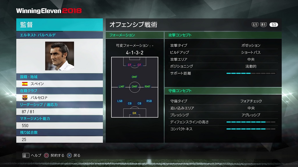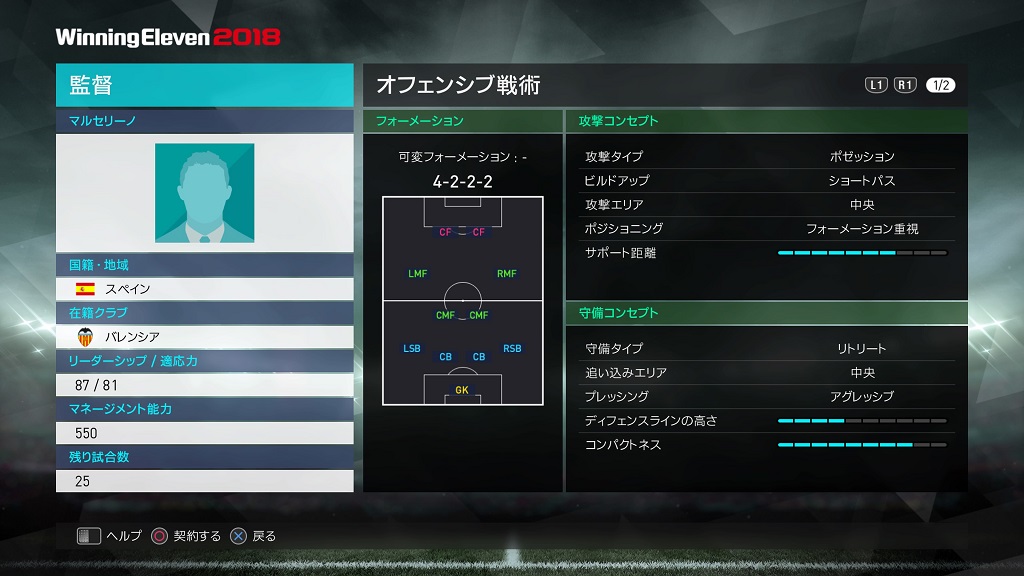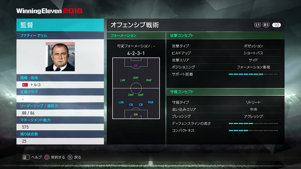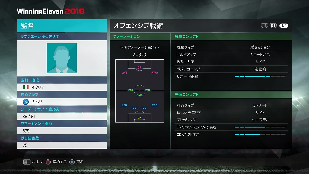 | フォーメーション | 4-3-3 18A/18B/18C |