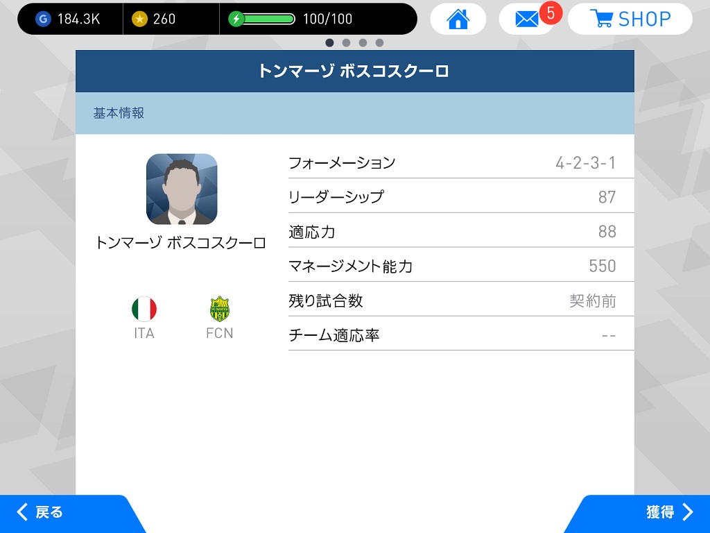 | フォーメーション | 4-2-3-1 非搭載 |