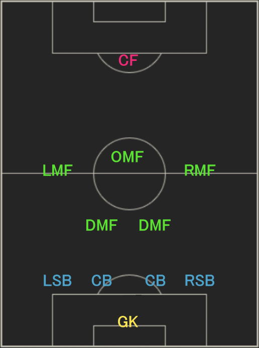 | フォーメーション | 4-3-1-2 18C |